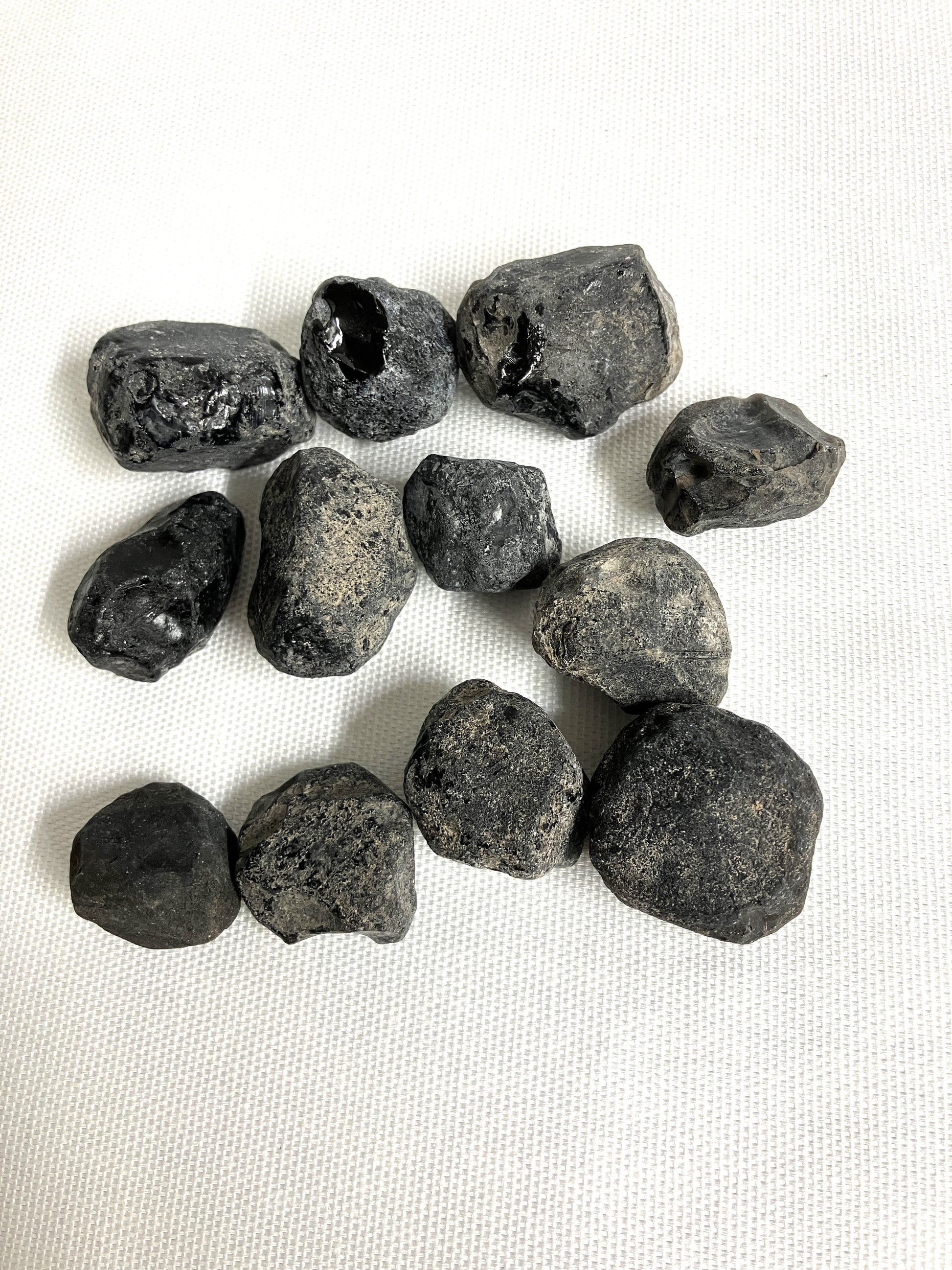 The Rough Apache Tears I have to offer measure appx. .75" +/- to 1" +/- The stones in the photos might not be the stone(s) you will receive but will be very similar. As these are natural items please expect some variance from item to item. This sale is for one (1) stone that will be intuitively be chosen for you, but you can always buy as many as you want! Questions? Please ask before buying.
